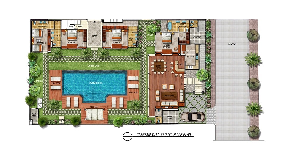 Abakoi Villa approximately 700 sqm, and Tangram Villa offers about 800 sqm.
