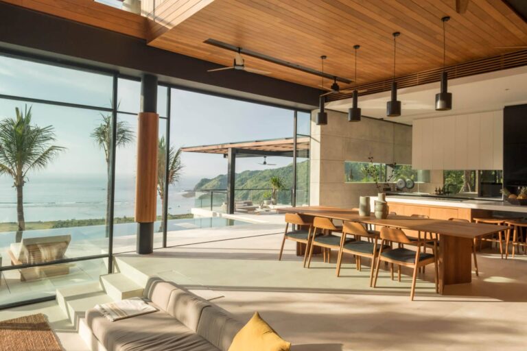 Open-concept living with large sliding doors frame sweeping sea views, merging indoor comfort with island allure.