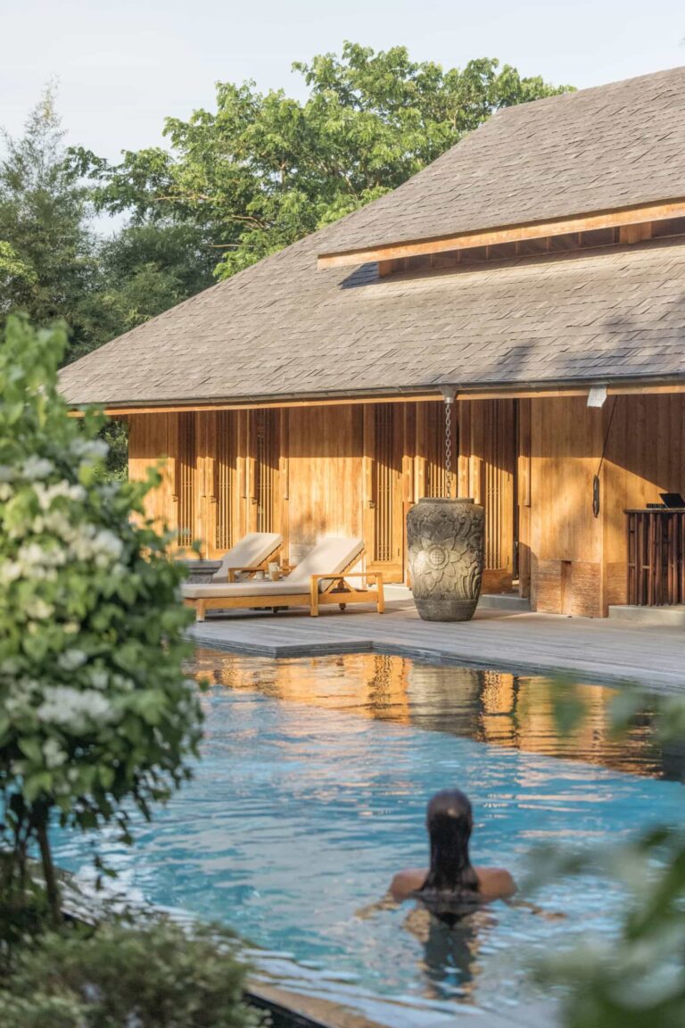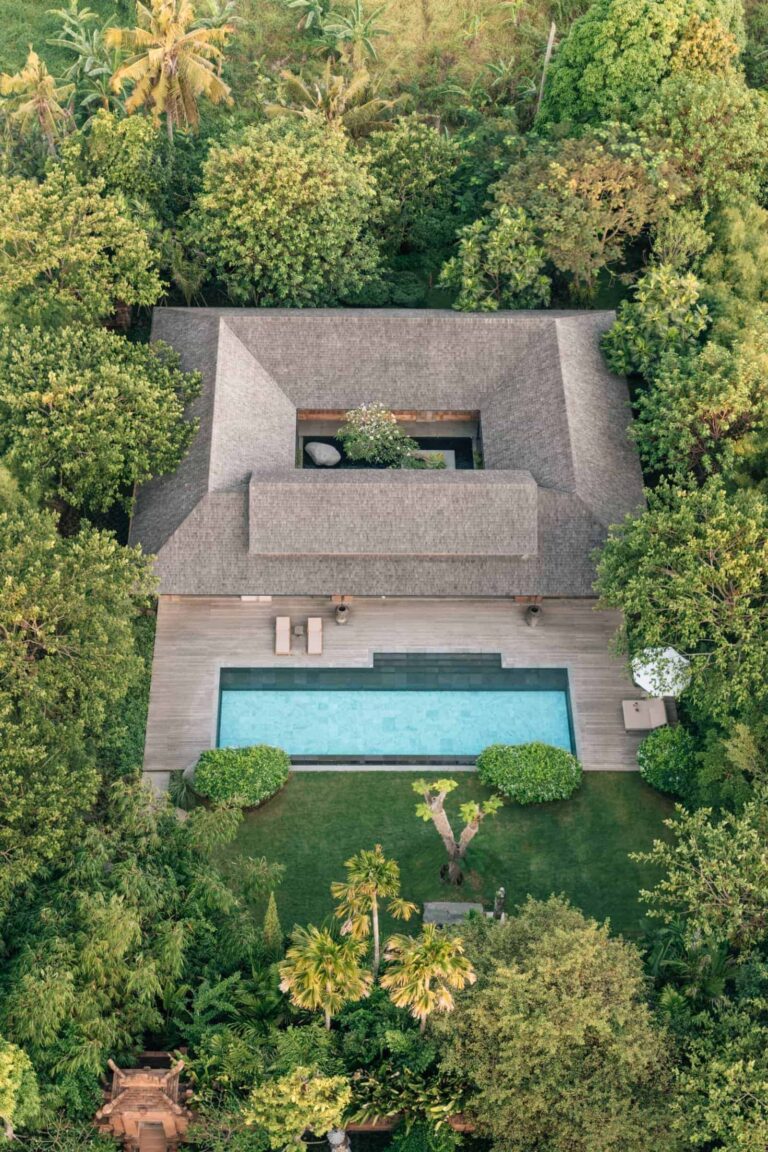 Architect Maximilian Jencquel from Studio Jencquel designed a sustainable luxury villa for a private client set in the upper reaches of Pererenan, Bali along a small river valley. The architecture is timeless, inspired by Japanese elements and relying on natural materials like lava stone and teak wood combine with Japanese-influenced elements to create a zen-like atmosphere just minutes from black sand beaches, surf breaks, and the heart of Canggu.